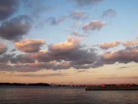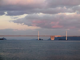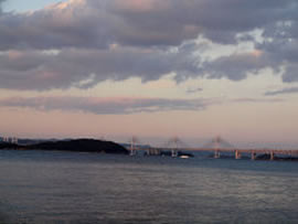 瀬戸大橋 の 優美な 斜張橋も あと少しで 夕日に 赤く染まりそうです