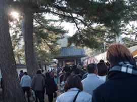 さぬき名物 餡餅雑煮の紀元のことや 漸く御影堂でお詣りしたら 少々 お疲れ気味! こんな時は・・ これでしょ これ~~ 甘酒! 舌鼓をうって・ 参道を歩いてると またまた行列が!!