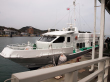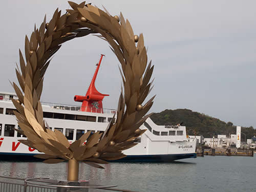 オリーブのオブジェがシンボルの・小豆島・ そう 犬島! 桜が満開の 美しい島 です! こんな可愛い船で 渡ります ♫ 犬島の港が 見えてきました~~♫ 先回の瀬戸芸から3年目・ 変わらない港の風景 早起きして 高松港から 船に揺られて・2時間あまり 今日一日 o(^^o)(o^^)oワクワク しながら の 島歩き! しかし・・何時ものまともに進まない 凸凹コンビPlus1