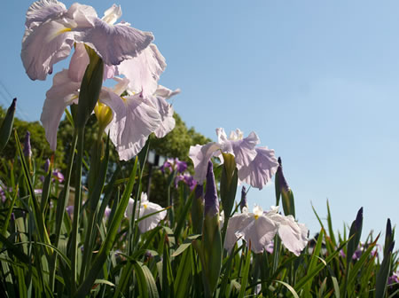 風は爽やかで 気持ちイイ~~~~♫ 広い菖蒲園の中を 歩いていると・ 少しずつ 空に向かって 手を差し伸べるように 花開き そして 水辺に優しい姿を浮かべる花菖蒲 まだまだ蕾が多く 満開はこれから!