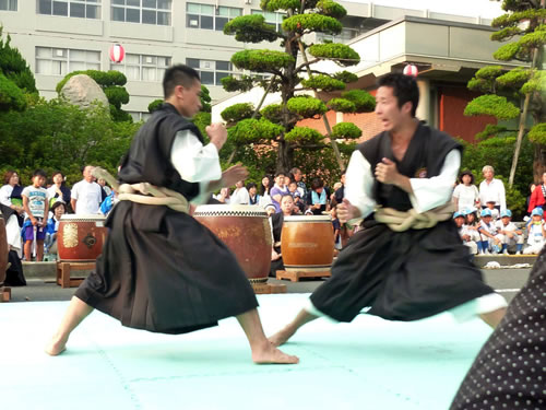 お〜〜 決まってる! 技の決まり かっこいい〜〜♫ 演舞が終わって 艶やかな??? (衣装と・!! え??) 踊りも1部 2部と あって・ 途中10分の休憩時に (今年は 昨年より 参加人数も多いし華やか♫) 踊りの輪が終わると いよいよ打ち上げ花火!