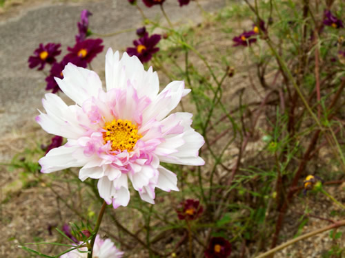 今日 車を走らせていると 道ばたに 今時 コスモスが綺麗に咲いていました