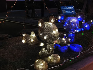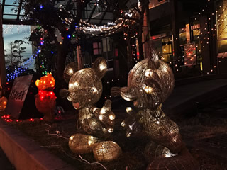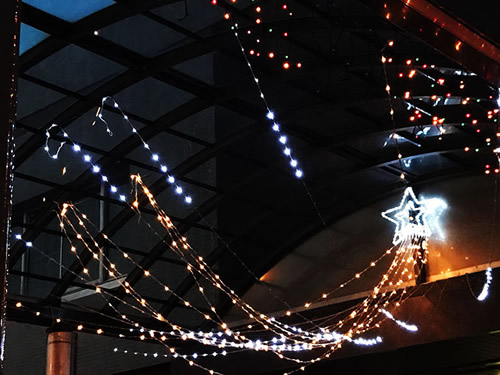 かなりしょぼく・・ 地元 役場のイルミネーション! 入り口付近の LED ここは 毎年同じデザインのような・ このペアのミッキーも毎年 同じ そして同じ位置! それなら〜〜〜 少し角度を変えて メタリックに! ≧(´▽`)≦アハハハ 天井銀河だけは・