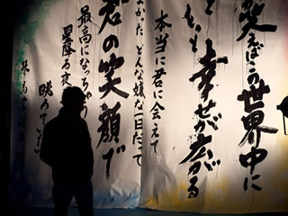 光のトンネルを抜けて 現実世界へ戻るだけ! その現実世界 への 入り口では 書道女子 + おまけの 書道男子の力作!! そして 後は 夢のような癒やしの灯りの世界から ドラム君が(まんのう公園のイメージキャラクター) 来年も きっとくるからね! 楽しみ!!