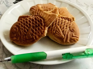 1月中は 仕事関連・で 気を遣うことが重なり・ 小雨模様のためか? お正月の行列は無く (おせんべいにお好み焼きが載ってるの!) 何時もは奥様が焼いてくれるのだけど外出中だったので (※右の背景画像)⇒ 早い話〜 巨大えびせんべいの上に崩した目玉焼きが そして〜 小さな鯛焼きも 小倉 チョコ 白あん クリーム え?? あれ?? 3コしかない?? (たません食べて鯛焼きもって食べすぎ?) ≧(´▽`)≦アハハハ (言い訳・・?) お昼食べて無かったσ(・・*)アタシ (あ!食べたのは 熱々1コだけですからね!!) これで 全ての料金は¥300円 やす〜〜ぃ! 巨大ついでの おみかん!
