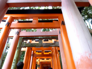 今日は良いお天気だったから 特に綺麗にみえる♫ 本殿 に参拝した後 伏見稲荷と言えば〜〜 これですよ ここ〜〜〜♫ (※右の背景画像)⇒ 通行が右側 左側と 行きと帰り 良くドラマでみる この鳥居の間から ふっと出てくる