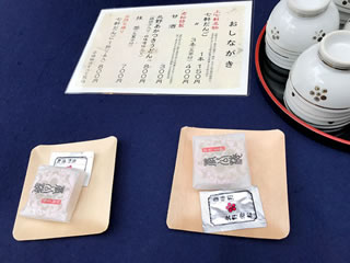 中にはこんな刀を磨いて貰った代金控??も! (・_・D フムフム (※右の背景画像)⇒ 刀剣だけでは無くて 巨大鈴や 豊臣秀吉が奉納した 馬の額 馬の鐙? や 鎧甲 そして ↑ は・顔のカバー?? そう・ 天神様は屋根の下の 彫刻まで 凄い! 重厚!! 次に行くところ ↓ 御土居を 目指します! 北野天満宮の奥? で 良いのかな? 御土居の中間くらいの所に有った お茶屋さんではチケットに 歩き疲れた頃に丁度良い休憩所! だけど・ ここ辺りから でもまだ傘が無くては??! と言うほどの振り方では無いし? 雨・・・ 雨が・・!
