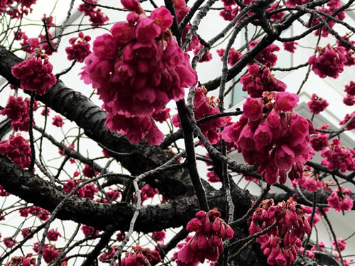 こんなに濃いピンク色の桜 他では 見たことがありません