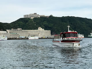 ここは 何でも5つ星だそうです この鯨の船でゆくの?? か・・・・ ・・・と 思ったら お迎えの船は これ!! ほんの5〜6分程度で ホテルに到着 少し休憩! と・・ 思いつつ・本日のスケジュールは ・・ (๑・̑◡・̑๑) 温泉に入り〜〜 ! ここの温泉はとても素晴らしく良い! 目覚めて 早朝の 窓からの景色も 広々と穏やか