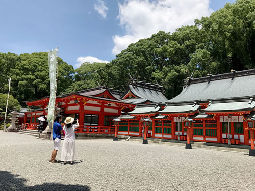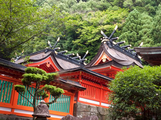 朱塗りの美しい建物 山全体が信仰の場所 深い緑に囲まれて 何だか 気分まですっきり! でも〜〜 途中で見た 熊野古道 数年前は歩いたけれど ここからの帰りもタクシーとバス! 暑かったし・・ いっかぁ〜〜〜♫ あ! 次は那智の滝目指して〜〜 バス移動です! by fujiko (2017.8.14UP) 〔To be continued〕⇒