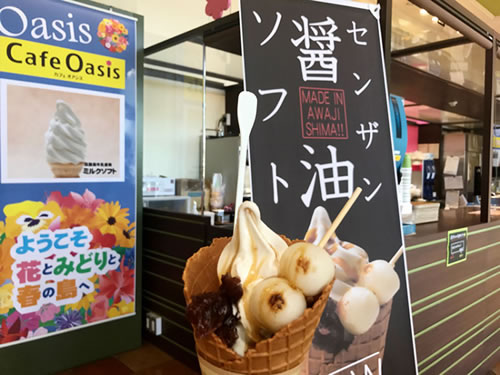 こんなの見ると スルーできません! 当然・・・ゲット♫ ええぇ〜〜〜?? もう出発の時間? ソフト まだ食べ終わってないんですけど・・! 仕方ない と ソフトで 満足していたら やがてバスは・・ 早めの昼食?? ですって???? さっき・・