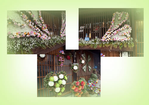 これは〜〜〜 窓飾り 何と 華やかなの〜〜??? flowerアレンジ! 正面から見ると・