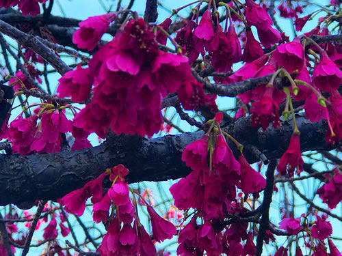 沖縄寒緋桜 先回はお天気が悪くて写真撮っても 撮ってみましたが〜 櫻とは思えない様な色です 既に 花びらの絨毯が はるばる沖縄から来たんだね〜〜?!! 1本だけしかないけれど 大きな枝を広げていました