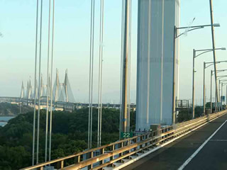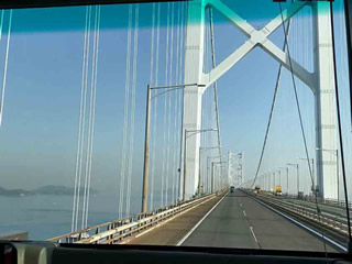 集合場所は 何時もの ここ 猪熊源一郎 美術館 横! 賑やかにバスは走り 斜張橋が綺麗に見えます (大好き!) これから 最初に 行くところは