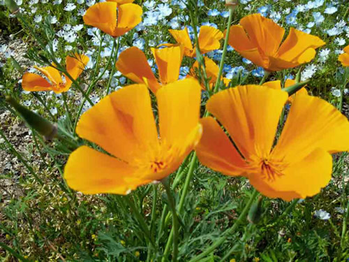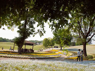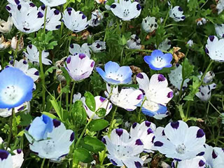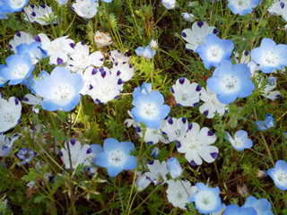 ここは 1年中 色々なお花が綺麗なところ・・ 30万株の ネモフィラに 逢うため! 広大な公園 の 花壇 一面に咲いていました コスモスだったり ・・・ シャーレーポピーだったり