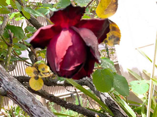 バラ展で真っ赤な大輪 のつもりで苗を買ったのに
