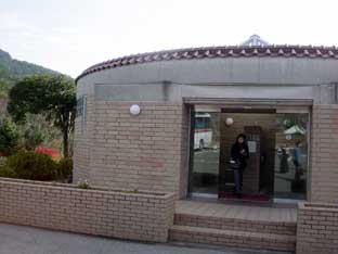 土庄港から・・観光名所、寒霞渓頂上へ~! 着くとガイドさんが・・・ "これが1億円をかけて出来たトイレです!" い・ち・お・く・えん?? 折角なので・・使わせていただきま~す! ・と入室! 何故か個室の中のドアの隙間から外が・・見える。 手洗いは? え? 自動じゃないの? あら?? これが一億円のトイレ?? (これで大丈夫なの??) 一般家庭に有りそうな 普通のエアコンみたいだしぃ~~~! (勿論、食べましたとも!!) オリーブのほろ苦っぽい味と香りがして・・・ 写真も撮りたい・焦って・・ (早い話が・・べちょっと・・涙) きっとデジカメも食べたかったに違いない! (; ;)ホロホロ これから・・この急勾配を下るのです! 紅葉が綺麗~~! あら?? 山の上に・・人が? じゃなかった・・誰かによく似た ケーブルに乗るとき・・ 見かねたのか・・ 親切なおばさまが・・だけど自分が座ってる で・・やっとこさ撮れたケーブルカーからの紅葉です! やがてケーブルは 下界に ~