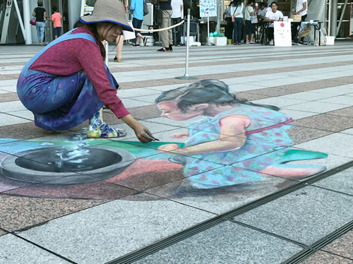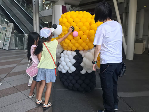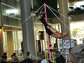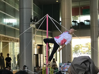 子供達に大人気! あの・・ぷよぷよ感が・・ ≧(´▽`)≦アハハハ サンポートだけで無く・ 少し離れた商店街とか等で ただ・・ 屋外での パフォーマンスは 台風25号 素晴らしいポールの演技! 場所を変えながら 演技が終わって そろそろ帰ろうかと思った途中! 平面で見ると 頭が長く描かれていて え?? と