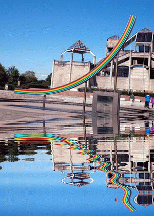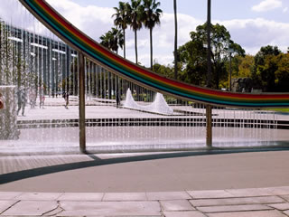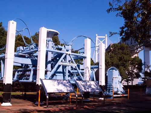 そして 工事に使われた機械も 保存・展示されてます! 記念館前にある 天の泉 このアーチは 瀬戸大橋のメインケーブルをイメージし、 未来に向かう四国の姿を そして 虹から勢いよく 記念館も 青空に気持ちよさそう〜〜〜 ♫ 水をふんだんに使った公園 快晴の一日 そそ!! メインの ハイキングは・・