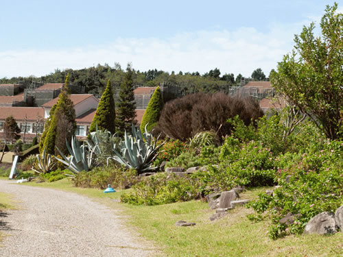 大きな竜舌蘭が お迎えしてくれた・・ とても広くて 何処を見ても緑が鮮やか!! 小さな庭に見立てた コーナーや 高校生が作ったと言う 庭の?? サンプル