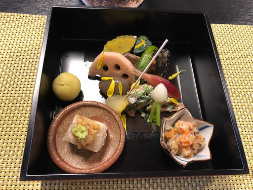 楽しみだったのです〜〜! 特に今年は・・ 見事にピカピカに磨き上げられた廊下! 鏡みたい! 紅葉も進んでいて 緑とのコントラストが鮮やか〜🎶 最初に見た お品書き・・ たべられるか心配! 次々と タイミングよく出てくる 精進料理の