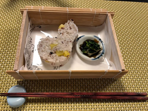 中でも・ このお蕎麦のお汁の 美味しかった事! 器もお洒落で 意表を突かれた このお品 中身は これ!! (๑・̑◡・̑๑) 黒米!