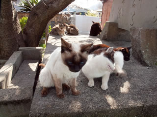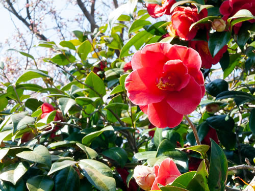 サザンカ?? も 負けずに 綺麗に咲いていました! この野生の観光慣れした猫たちに 妙に懐かれて 今年最初のお花見は 一番綺麗な時に来たのかも??