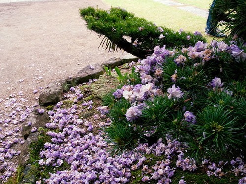いえ 藤の花は 一重だけでは無くて・ こんな八重の この・ 八重の花びらが風に吹かれて〜〜 こんなに綺麗な絨毯になっていたの 初めて見た気がする 一昨日 曇り空だったけれど行った日・既に かなり 藤の花 写真撮るの難しい! by fujiko (2019.5.4UP) 〔To be continued〕⇒