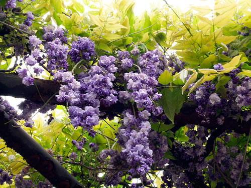 え?? 藤の花って〜〜上から下がってるんだよね??! 元 こんなに綺麗に 下がっていた藤の花 満開になって ほんのり良い香りがして なが〜〜〜ぃ 花房になって・・