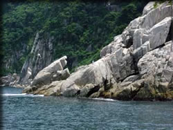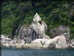 読者の方達から・次の訪問の予想をいただきました!(感謝) 若狭 蘇同門巡り~~ ≧(´▽`)≦アハハハ 白波を残して・洞門巡り♪ 着物を着た姫君みたいな・・とか 亀が上陸したみたいな岩や・ メインでもある・大きな洞窟・・ 写真では小さく見えるかも知れませんが・・ とほほ~! 乗船直後、デッキで写真を!と思ったのは良いけれど・・ ずっと右側のシートは空いていたのに・・・ 仕方なく・・立ったまんま・ とグチグチ思いながらもカメラだけは離さないこの根性!! どうかすると・・奇人 変人??? 思い出のショットは、 そしてまた・・次の風景に・・ ≧(´▽`)≦アハハハ by fujiko(2007.8.9UP) 〔To be continued〕⇒
