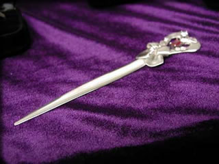 作品展が無事終了!! ほっ~~ ♪ (アラビアン・ポットのポーズが心境を物語ってる???) 乗り切れないかと思ったけど・・ (だれもほめてくれないから・・・≧(´▽`)≦アハハハ) 遊び感覚で作った空き瓶ベースの お城~~~♪ そして・・少しゴージャスな・・純銀のペーパーナイフ! このペーパーナイフは 薄く刃を付けなければいけないので・・ 一つの山は越えたけれど・・ 何とかなるさ~~~♪ ≧(´▽`)≦アハハハ