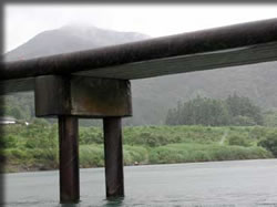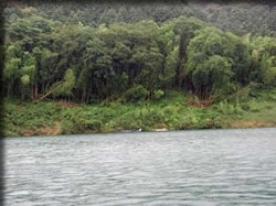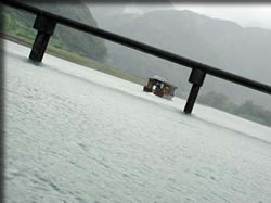 だらだら坂を・・雨に濡れながら下り・・ 雨で無ければ・・ だけど・・それでも・・ “窓が曇って外が見えにくいので・・少し開けて下さい” 川はとっても静か 揺れることもなく・・ 雨が降っていなければ・ 前を走った?? 観光船が 私たちの乗った船も 当然~! 橋桁の下 通過~~♪ 通り抜け~~! 橋に 手すりはなく・・ こんな橋が何カ所かこの四万十川に有る様で、 車で橋の上まで訪れる人も 沢山いるらしい・ 橋の下を 屋形船が通り抜けられるほどの 高台の売店の屋根以上に浸水したのが H19年 船から下りて・ その売店の所まであがって見ると・・ 山は・・相変わらず・ 雨・だけど・・ これから・・待望のお食事タイム~~♪ by fujiko(2008.7.10UP) 〔To be continued〕⇒
