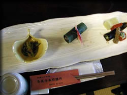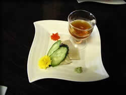 今日は・かなり冷え冷え!! さむ~~ぃ!! そんな季節だけど・・ 暖かかった数日前に・・ これは・・バスツアーだったのだけど・・ 先ず~~向付~~!!↑ 次に出てきたのが・・ こんにゃくの刺身! これが・ この出汁に浸けて食べるのだけど・・絶品!! 次に出てきたのが・・ 湯葉の巾着煮 他に・は・・ 美味しかったので・・ハイ(^-^")/ 大きな椎茸を アワビのように 椎茸を沢山使っていたけど・・ もう・・お腹一杯で食べられませ~~~ん!! だって・ 残すのは・・勿体ないでしょう?? お寺だし!! でも・・ このあたりから・・ 本当は・・全部食べたかった!! 今だけ・・・・・ギャル曽根に・・・ それでも ようやく・・デザートに!! お隣さんが やっていたのを おはぎは・・ でも・・全体的に ぢつは・・ このツアー・ と言うか・・・ その・・ 詳細は・・ by fujiko(2008.11.28UP) 〔To be continued〕⇒