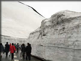 こんなに高く積もった雪の壁~~♪