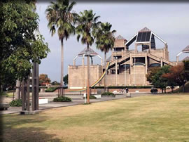 前回の オブジェの 回答です~♪ ・・・・・・と正面 ! これは・・ 突然 こんなでかい のが出現~ すぐ側は・・ 人工の滝と 岩の洞窟が!! この左の滝の下をくぐって・ 池の 中央あたりから そして・・もう一つ 不思議に 美しい姿だと 思います・・ 建物のすぐ前にある・・虹の滝 このオブジェは・ソーラー電池 紅葉が ここも綺麗でした~~♪ 突然 思いつきで半日 次は この 美術館で (≧(´▽`)≦アハハハ) by fujiko(2009.12.5UP) 〔To be continued〕⇒