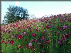 コスモスが 綺麗です~~♪ コスモスの 丘に 色とりどりの~~ 沢山の 品種が あるらしいけど~~ ピンク ♪ 赤紫~~♪ 縁飾りの とっても綺麗な~~ コスモス! 淡い クリーム色 ! ここに来ると いつも思う事ですが・・~~ 広々としていて 小さな事で くよくよする 小高い山や ゆったりとした芝生広場や 今は コスモスの 散歩道~~ ここに そそ~~!! 竜が滝を上っている イメージの この滝は タイマーで 水量が 変わるように ≧(´▽`)≦アハハハ 短い時間だったけど・・ by fujiko(2010.10.13UP) 〔To be continued〕⇒