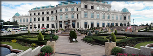 工場見学で 少しだけ焼肉の 試食したから~~ 宮殿の 中の晩餐館 社員食堂も 兼ねてるようだけど 焼肉のたれ 沢山の種類があったので 特に~~ だけど~~ どれも 美味でした~~! この 工場は フランスの ベルベデーレ宮殿を 正面に ある 噴水! 一番上は・・・・・・・・??! 宮殿最上階から撮った庭の全景です~~♪ マリー アントワネットが 眺めた風景も そして シャンデリアのロビーに 降りてくると~~ 等身大の 甲冑 実際に人間が 入れます~~♪ 外に出ると 庭の 緑がとっても 爽やかです~~♪ 左側のイングリッシュガーデン! クラシックカーも おまけの~ ということで~~ きれいな 宮殿と ありがと~~ 楽しかった~~♪ お時間のある方は 日本食研からは お土産でドレッシング1本いただいたし~~ 何しろ~~ 貢物に 弱いσ(^_^)アタシですから~~♪ 次は~~ タオル美術館です~~♪ by fujiko(2010.12.8UP) 〔To be continued〕⇒
