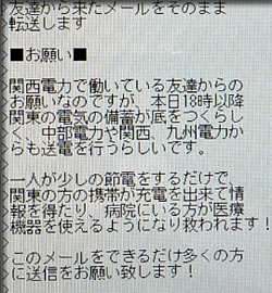 大津波と地震で 毎日報道され・・ 自分たちのことは 元気だ 今震災にあわなかった 私たち・ ネットでもそうなんだけど・・ だけど・・ それは それとして・ ただむやみに救援物資を送ればいいってものじゃないでしょう? 津波 地震の あまりのむごさを そんなところに 連絡が取れなくなった友達がいる・・ 今 孤立して 救援物資を待っている方たち がんばって・! 命を大切にしてください! by fujiko(2011.3.24UP) 〔To be continued〕⇒
