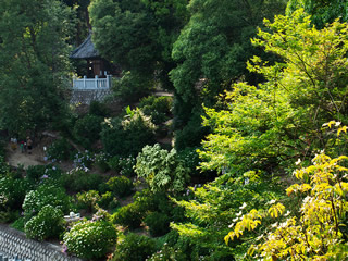 種類も多くて 背丈よりも うんと高い紫陽花とか 階段を上ったり うねうねと続く広大な庭 境内は兎に角広い! そしてここも坂道!