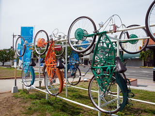 ビーナスが はっ!!と振り向いた先に??は?? こんなオブジェもあったのです!! え?? 瀬戸芸の始まった時 かなり人気だった自転車の 公園をから少し離れて 街の中に!