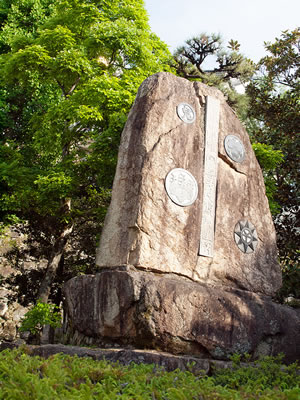 せっかく岡山まで来たのだし〜〜?! 岡山城は と言うわけで・・ 宇野港から岡山城にたどり着き〜〜♩ お堀を回り〜〜♫ てくてく こんな石碑が! なんだか 不思議な紋様が! 巨大な石に取付けられたもの・ なんなんだろう?? 岡山城は とにかく広い 大きい!! よく見ると 屋根瓦にも家紋が! ここは 例の・・ 鉄砲とか 矢とかを撃つための窓? 権力の揺るぎない江戸時代だったはずだけど・・それでも