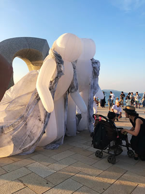 とある クラブでのミーティングの後・ 先ず ボサノバとか ラテン系の演奏 そして これを 見たかったのです・・ 夢!! フランスから やってきた三年前にも来ていました 背丈が人の倍ほどの高さのバルーンの中に居たのは