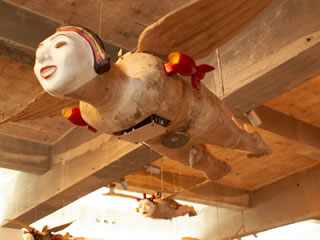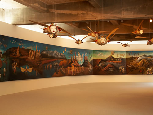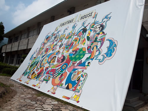 壁面一杯 ぐるりと囲むように描かれた 写真では説明しきれない・・ 次の部屋は・・ タイトル 鬼火 実物はもっと薄暗くて・奥のスクリーンをノックすると 廃校になった福田小学校の教室を改装して by fujiko (2019.8.24UP) 〔To be continued〕⇒