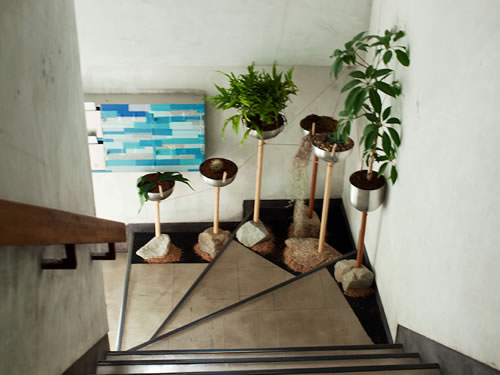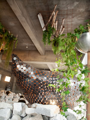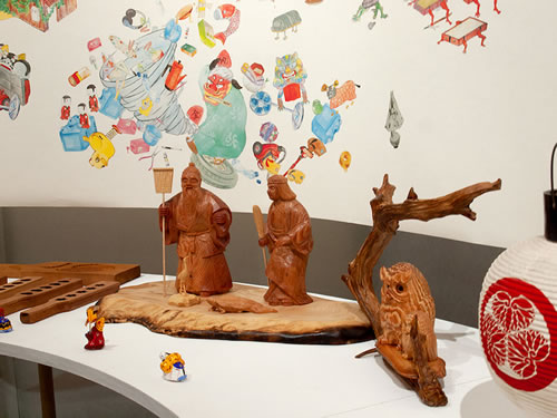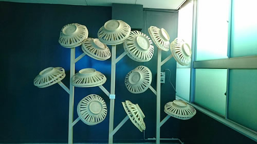 この・背景の絵は 讃岐漆器 とても繊細で美しい工芸品です! これは何だと思います?? 讃岐三白の一つ うどんロボットと同じフロアに展示された 次の会場に移動 ビルのエレベーター前のオブジェ メタルと石と green が目印の 会場!