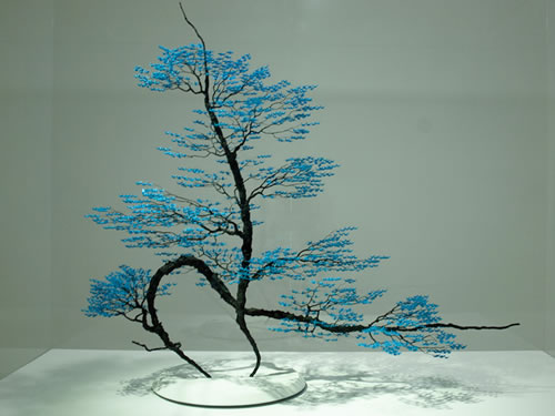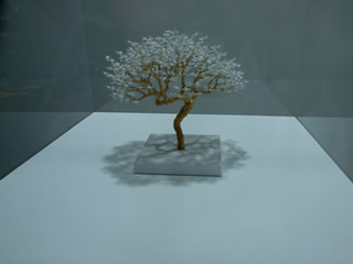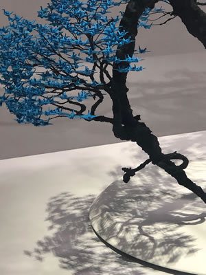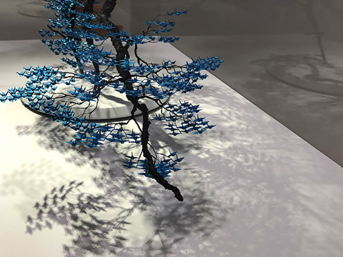 全て折り鶴! ワイヤーアレンジも面白い! ごく小さな折り鶴 コツコツと 折りたたんで・・ 一体・・ 一つの作品に 何匹の鶴がいるんだろ?? 気の遠くなる様な作業! 光と蔭まで 素敵な空間 を作り出してる