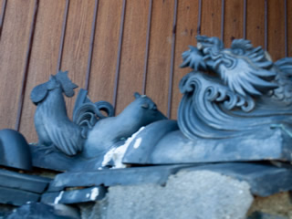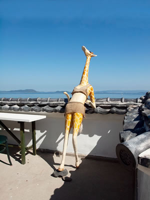 あれ?? 二宮金次郎の銅像?! 廃校になった今も! あ!! のんびり寝そべってる猫ちゃん 可愛い〜♫ あれ? 何か面白そうなのを見付けて飛び上がりそうな・ きりんさんが 大あくびをしてるような ここの屋根瓦 干支の十二支が配置されてるんだとか・・? その中庭の盛り上がった土も瀬戸芸だとか・・??