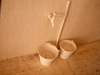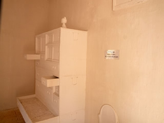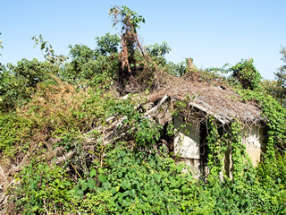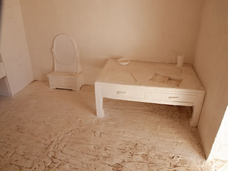 この港から 船に乗って〜 帰るだけです が〜 港に降り立つと眼に前にある この・・白いドーム やはり同じように白い世界(茶っぽくなってるけど白!) 生活感の少しだけ残るテーブルと鏡 かと思えば 何故か 蛇口とバケツが二つ! よ〜わからん?! 緑に覆われ 埋め尽くされようとしている廃屋