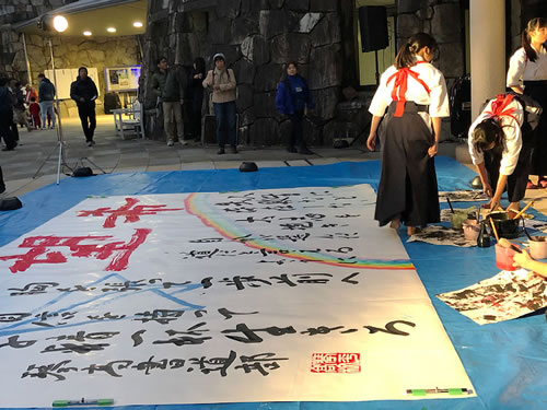 ライトアップにはかなり早かったけれど 光のファンタジー ここに来たのは久しぶり! 到着して少し公園内を ぷらっと〜〜 と 思ったら PM17:00〜〜 高校生の書道パフォーマンスが! ライトアップにはまだまだ速い なおかつ 当然 これでしょう〜〜〜♪ o(*^▽^*)oあはっ♪ チョコアイスが美味しそうに見えたので (*'ー'*)ふふっ♪ そして始まった書道パフォーマンス 車に戻って