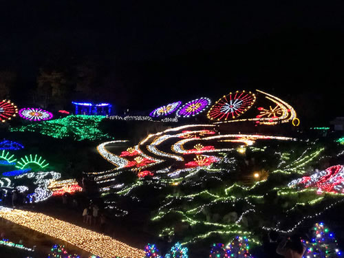 その奥方向は 水と水車?? 黄金色の(違うように見えるけど・?) そして 光の宮殿 (どれが??) 一足早いChristmas 少しだけ暖かかった日 光の海は広大な公園一杯にちりばめられて 勿論 カメラ抱えて 歩きましたとさ by fujiko (2019.12.20UP) 〔To be continued〕⇒