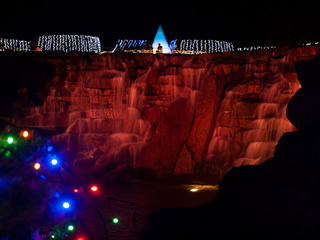 この公園のキャラクタードラムくんも嬉しそうです 公園の 昼間はこんな滝が流れていて・・ 夜になってライトアップされ 昼と夜の顔が見れました すこし早めのクリスマス気分 シャンパンタワーを・・・ 誰ですか? いとも軽々と持ち上げているのは!! シャンパンをみんなに配って乾杯するって?? 燃える様な紅葉と